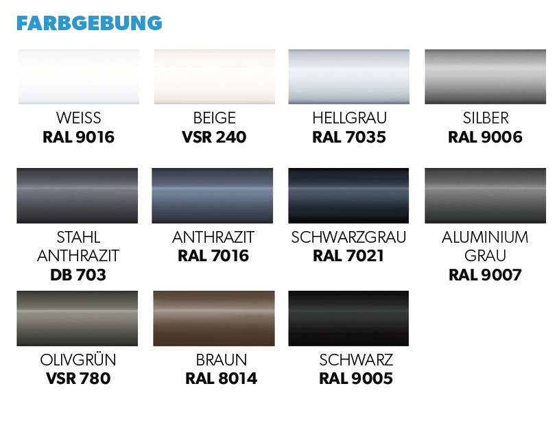 Zum XX. November 2021 führen wir die Farbe BRAUN – im Sinne: RAL 8014 – in das Angebot der Außenjalousien ein.