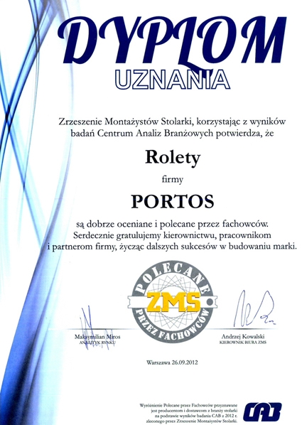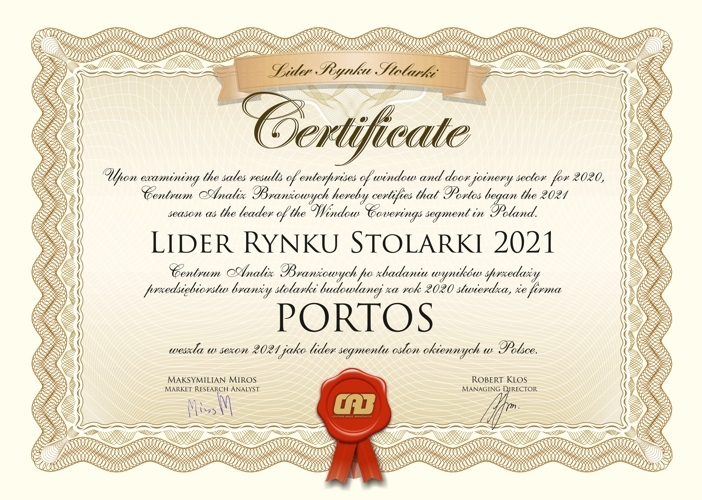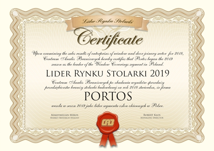 The quality of our shutters, as well as of the elements for their production, is supported by the awards that we received.
