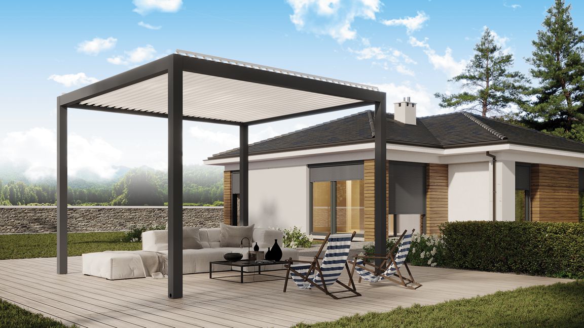 The new pergola stands out with its smaller dimensions and reduced weight while maintaining a high aesthetic standard.
