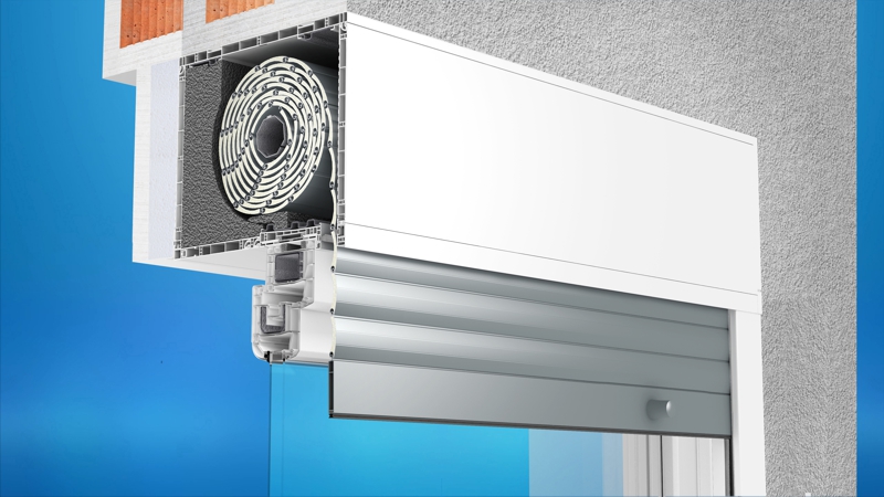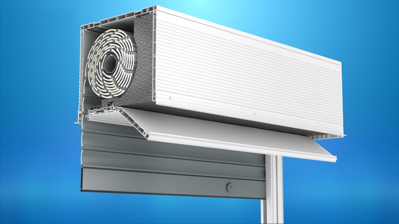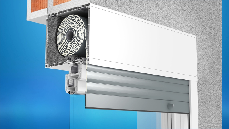 The revision cover in such a build-in installation occurs from the bottom and the operation of the shutter takes place from the inside of the room.