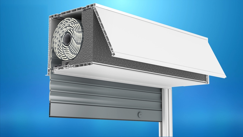 The revision cover in such a build-up installation occurs from the bottom, and the operation of the shutter takes place from the inside of the room.