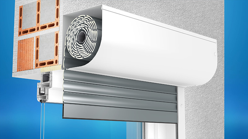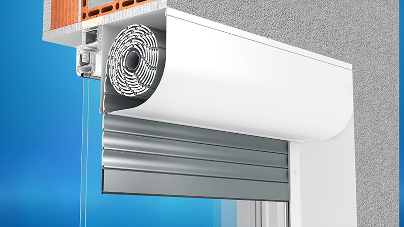 Napęd (taśma lub linka) wyprowadzone są tyłem skrzynki, następnie poprzez otwór w ścianie do wnętrza pomieszczenia.